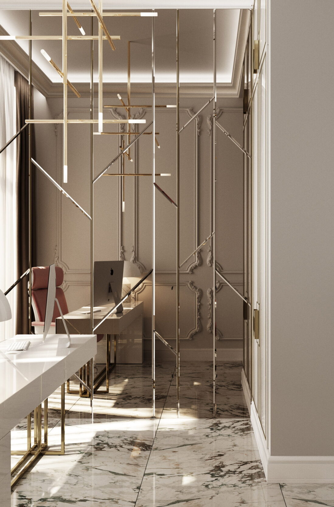 It is important to consider the specifics of the building where the salon is located. It may be an interesting historical building with a rich history, or a specially constructed location. In the latter case, it works well to collaborate with author’s supervision, where the designer controls the project from the moment the salon building is constructed.