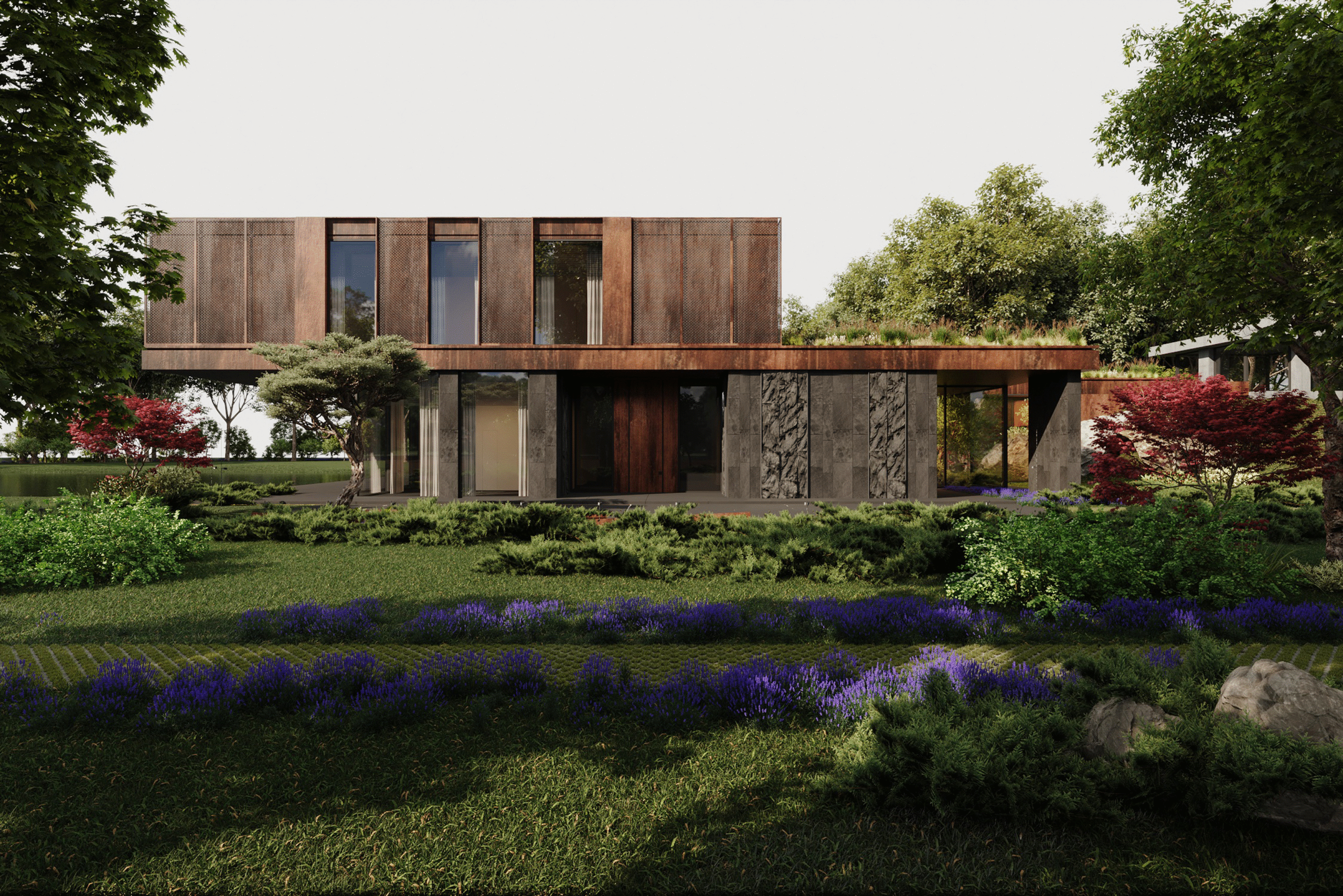 Bedroom of a new private residence near Kyiv. The