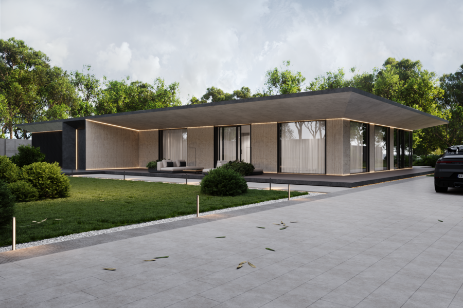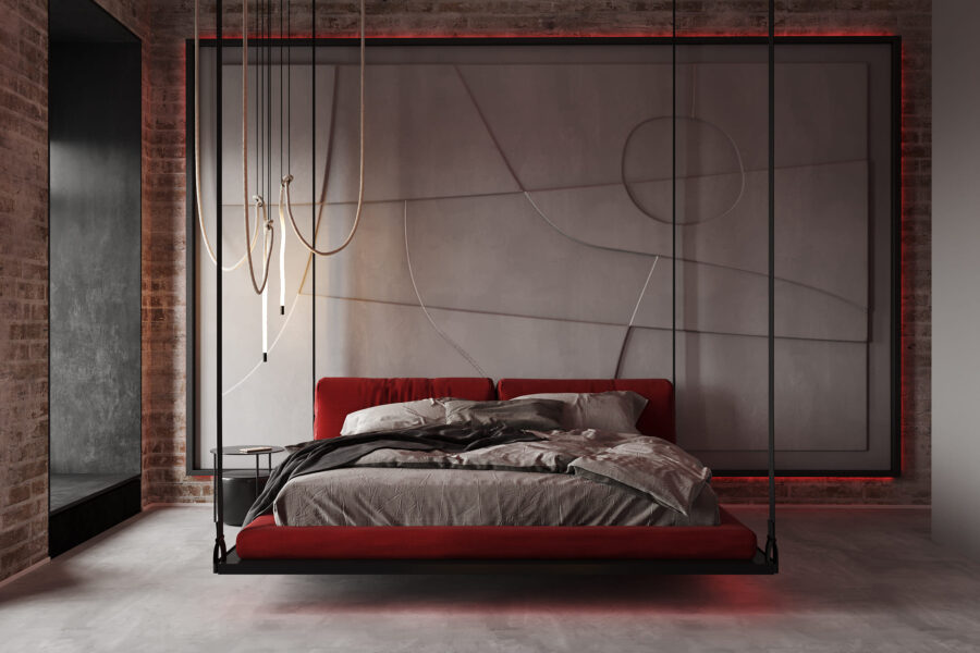 Bedroom of a new private residence near Kyiv. The