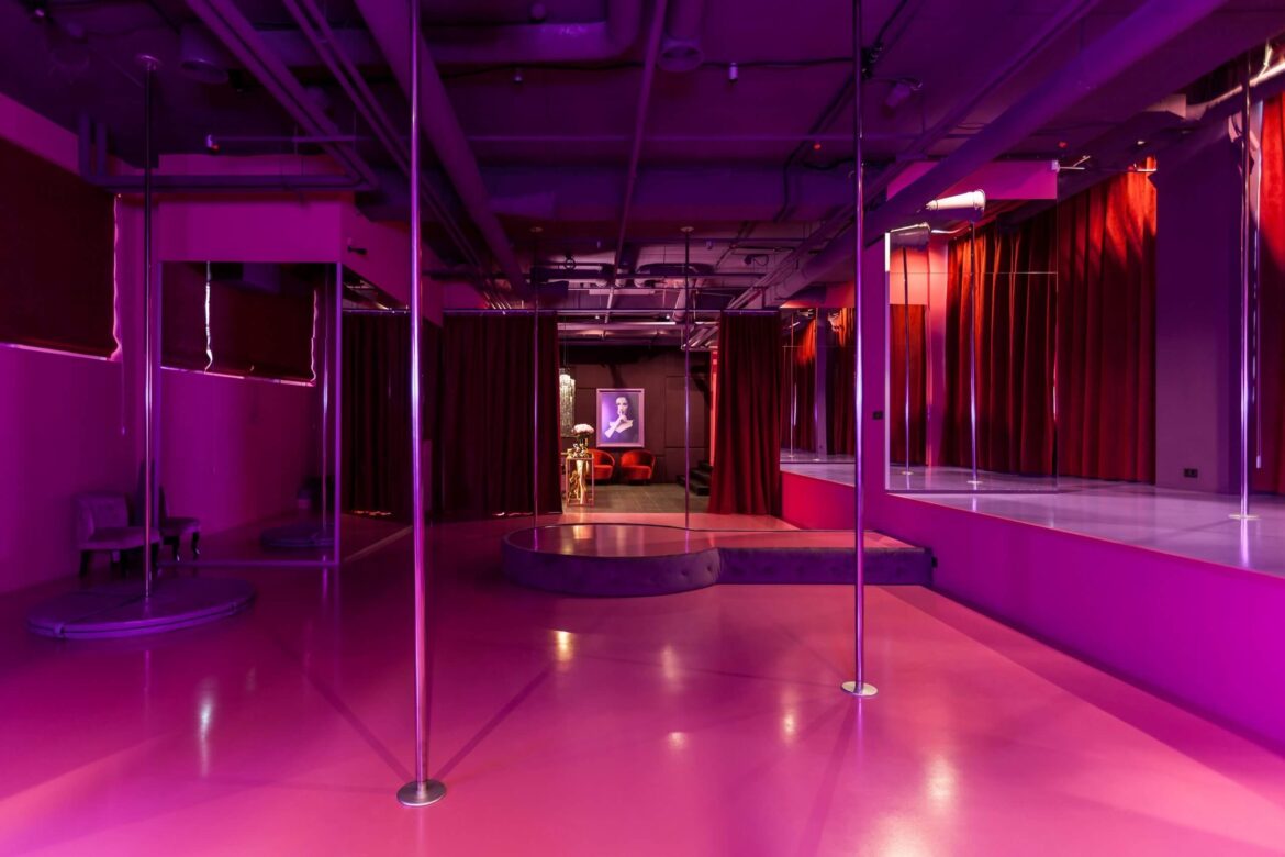 The main challenges faced were the lack of heating, which was not even planned by the designers, and a platform in the center of the room. We addressed the heating issue with a climate control system. The space’s structural features were turned from a drawback into an advantage: since the platform in the center of the room could not be dismantled, it was converted into a stage for pole dance instructors.