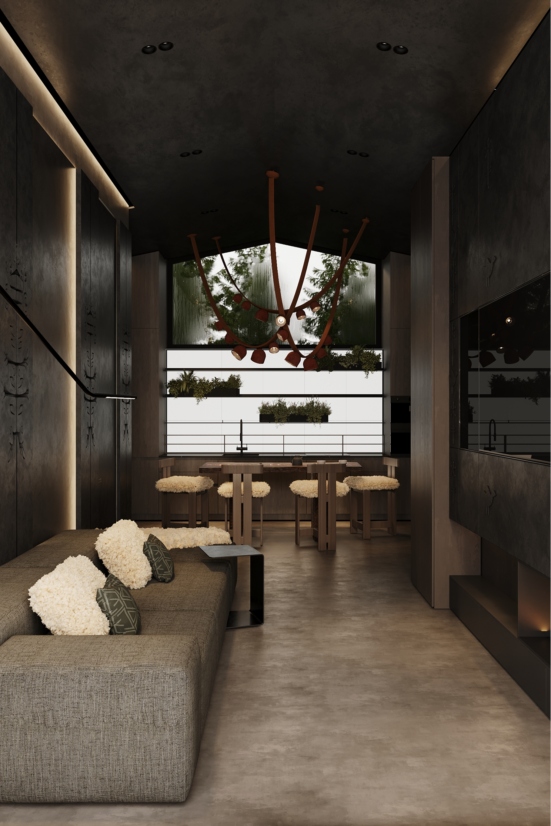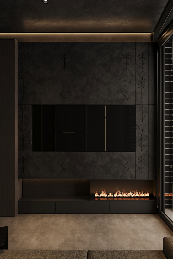 We deeply studied Ukrainian ornamental language — not to replicate it, but to reinterpret it. To breathe new life into it. To weave it into the space in a way that feels intuitive, not overt — provoking reflection rather than giving answers. This interior doesn’t shout — it whispers. It invites you to listen closely, to read between the lines. It’s not just design — it’s a story waiting to unfold.